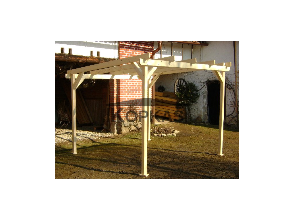 - Stojky pergoly jsou vyrobené z masivních smrkových hranolů 95 x 95 mm.